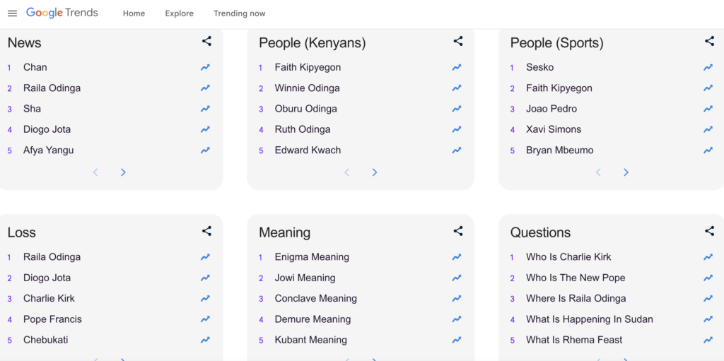 Sport remained a powerful unifying force, with the African Nations Championship (CHAN) becoming the country’s top-searched news item. The tournament’s rise to the top spot highlights Kenya’s deep passion for football and the energy it injects into public life.